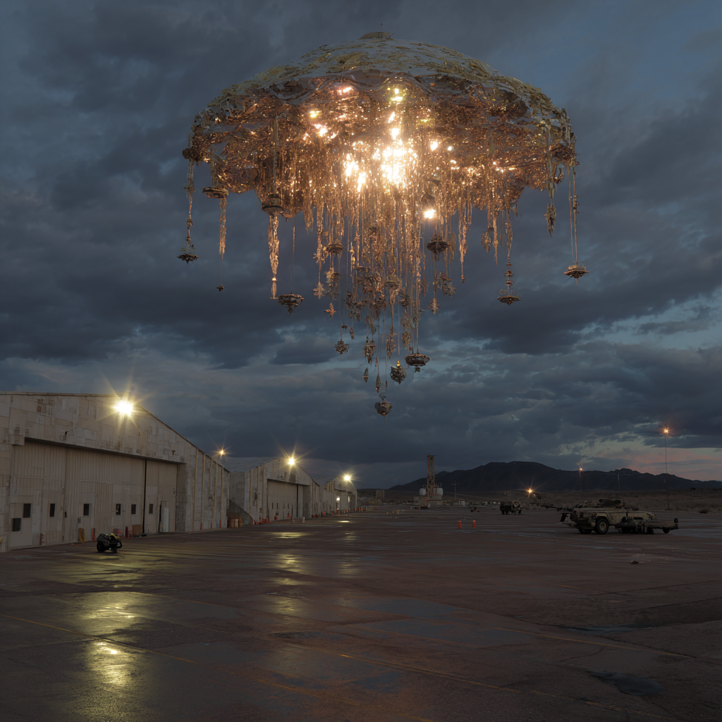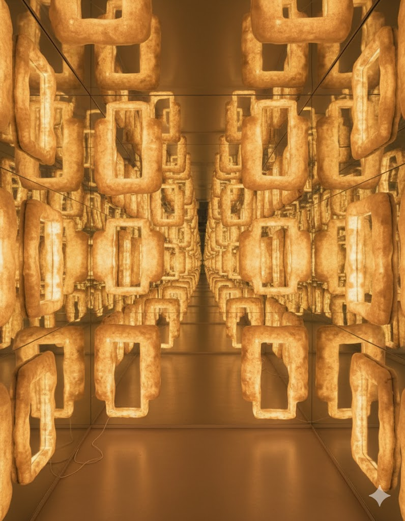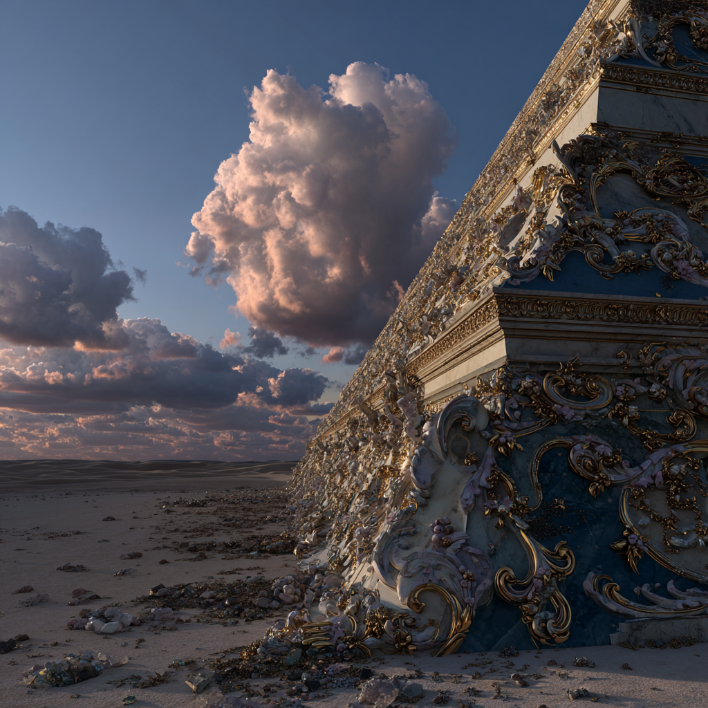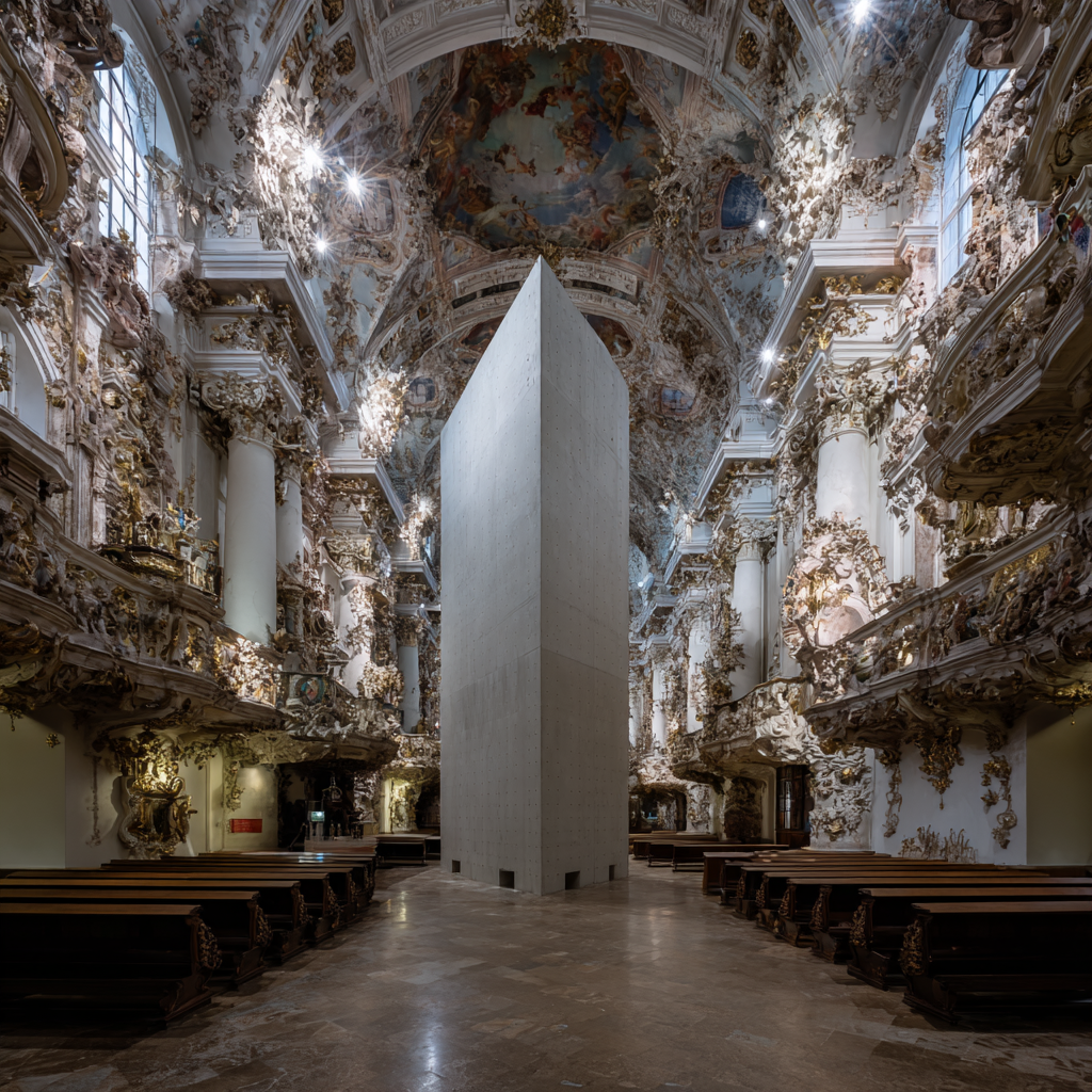 Kubrick showed it first — the monolith: “a shape of perfect simplicity containing infinite complexity”(26). Minimal surface, maximal symbol(26). Silence has learned to decorate.