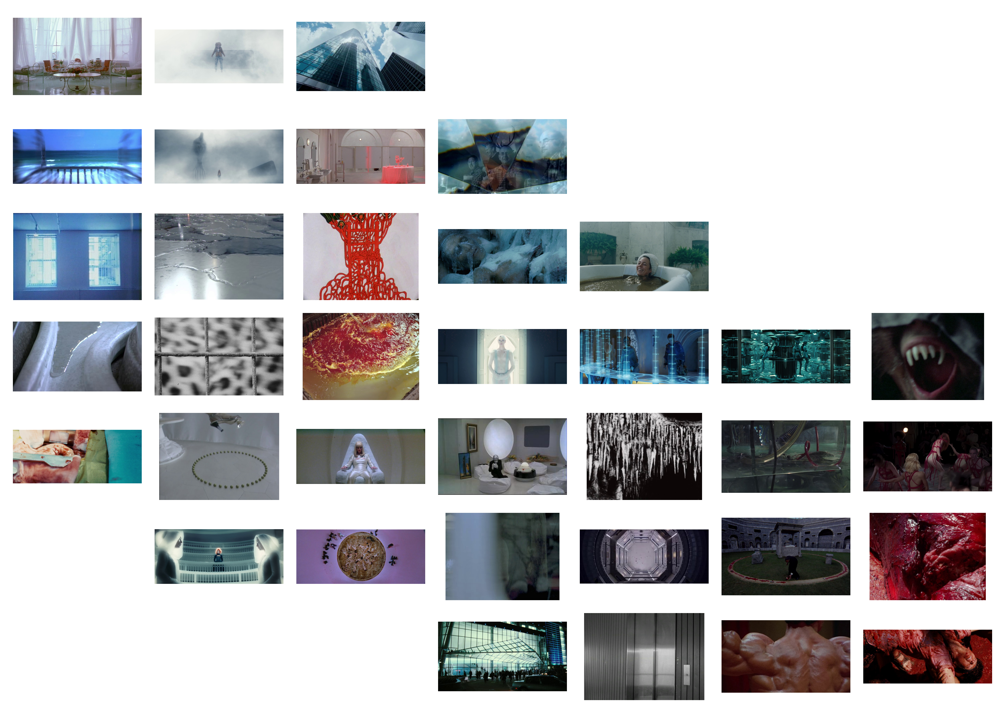 Beauty consists in a rational integration of proportions(21) — but when proportion loses matter, beauty migrates to its shadow. Lineament, that which the mind forms in the soul(22), now becomes surface — the shimmer thinking.